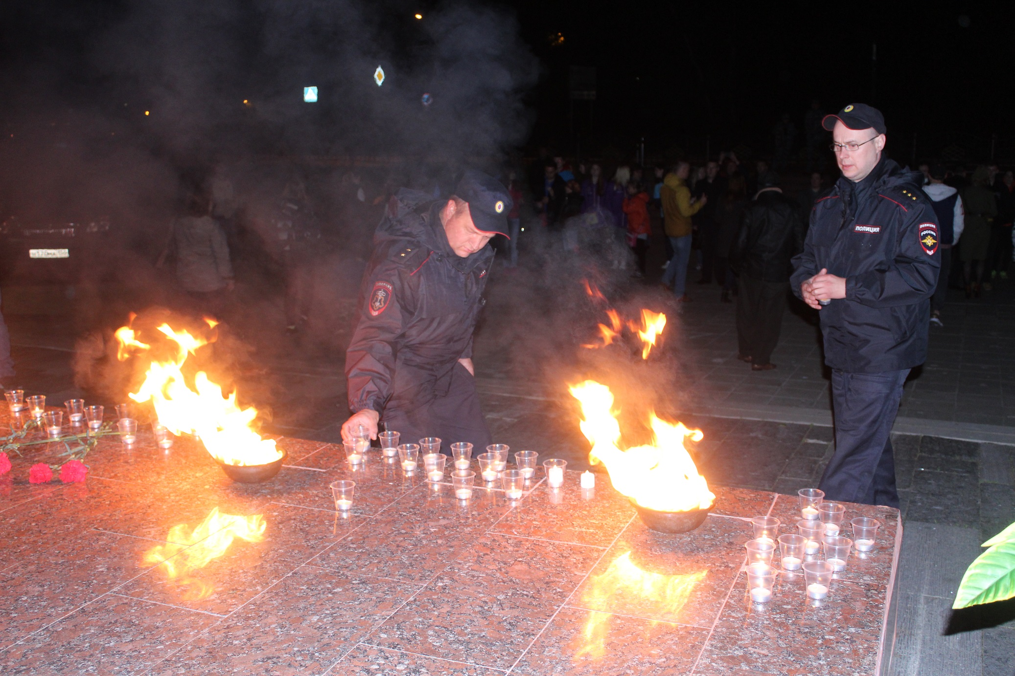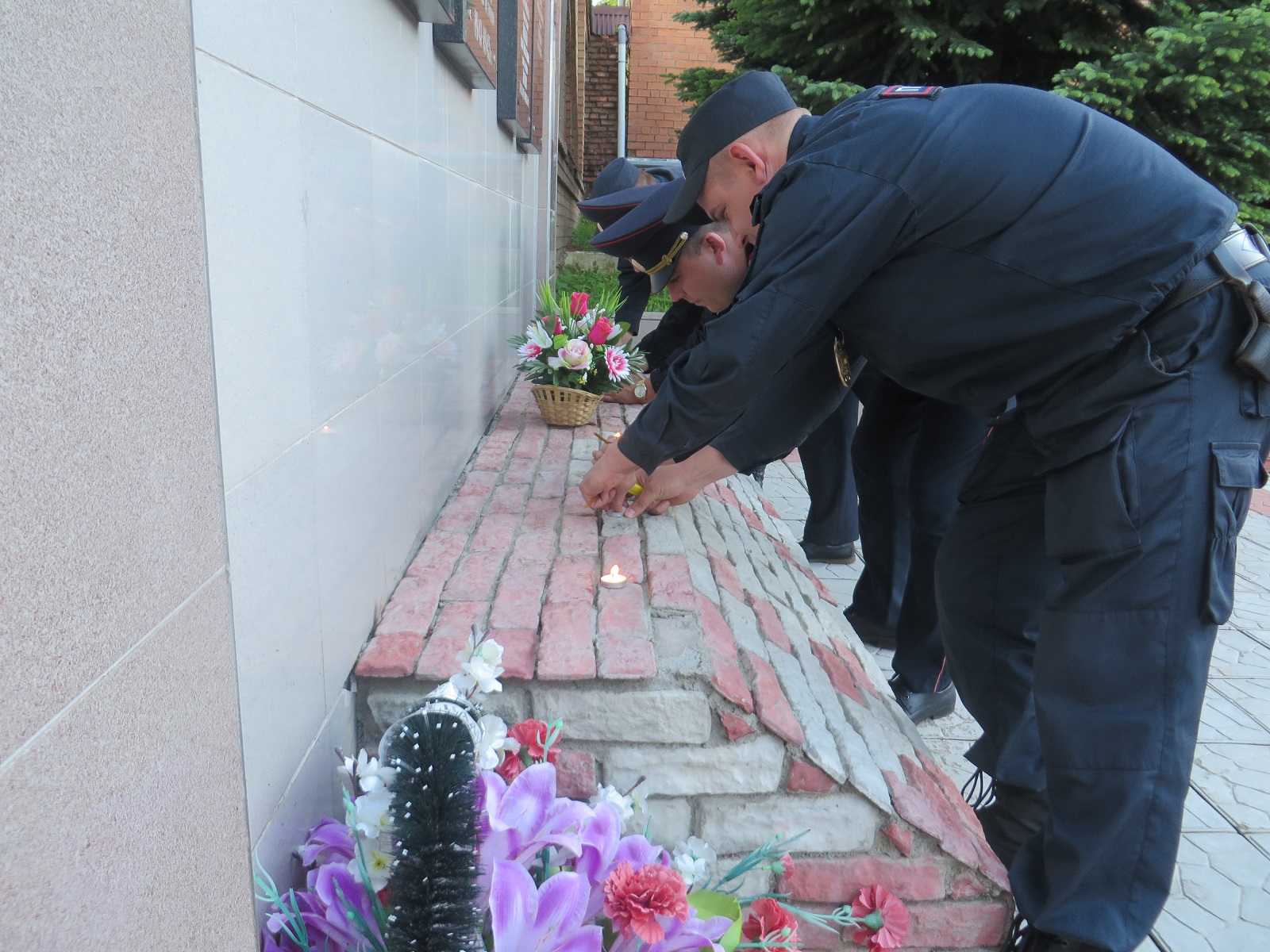 В завершении мероприятия сотрудники полиции почтили память павших сотрудников органов внутренних дел и солдат минутой молчания, возложением цветов и зажжением свечей.