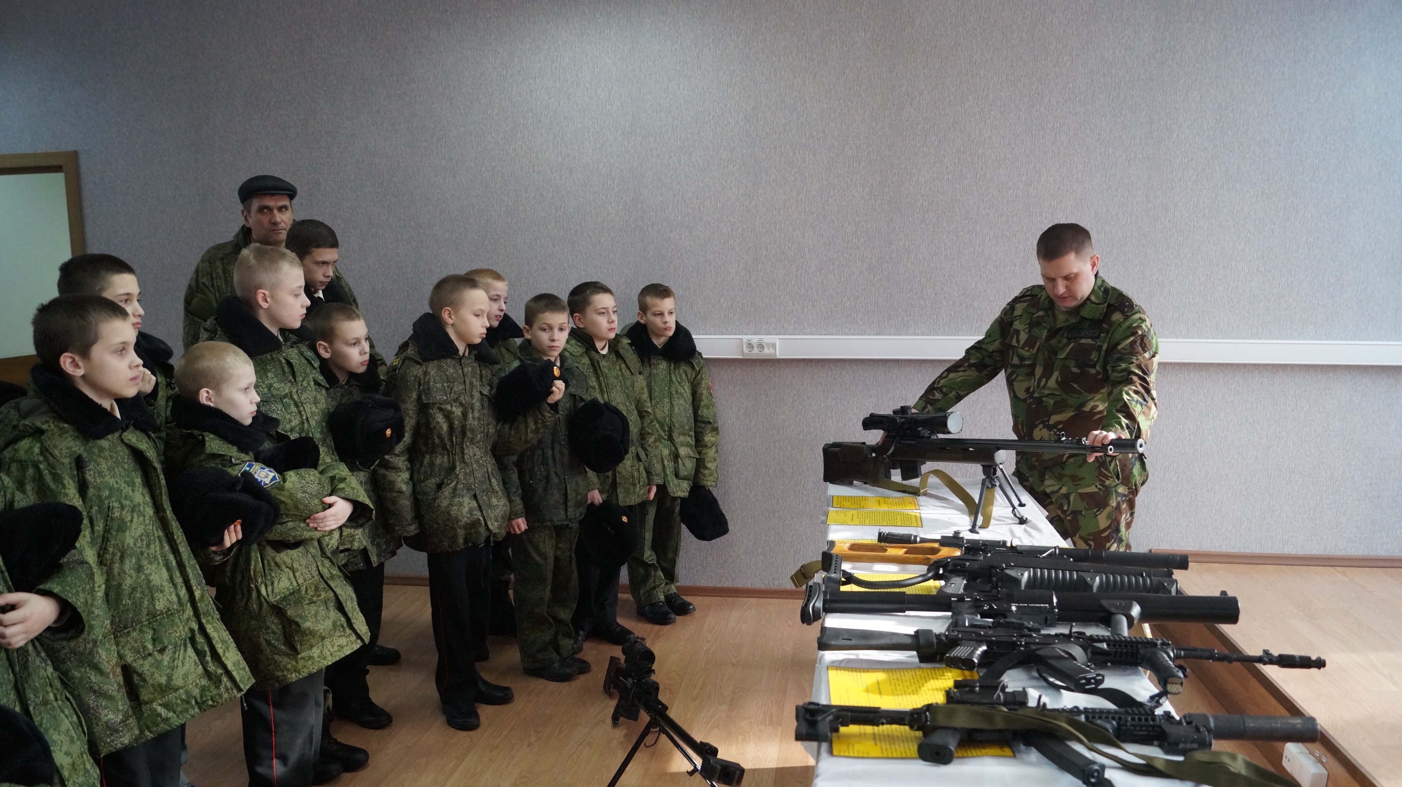 В Сергиевом Посаде на базе ОМОН «Пересвет» состоялся урок Мужества для детей из Радумльского кадетского корпуса, приуроченный ко Дню защитника Отечества. В рамках мероприятия бойцы ОМОН рассказали кадетам о героических подвигах своих коллег, поделились яркими воспоминаниями о службе и жизненным опытом. Для воспитанников корпуса сотрудники Росгвардии подготовили и показали обширную программу.